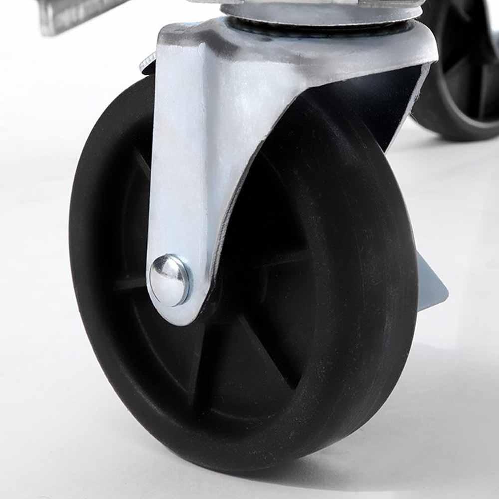 La mesa cuenta con 2 ruedas delanteras con freno y 2 ruedas traseras locas para facilitar su movimiento y estabilidad en tu establecimiento.