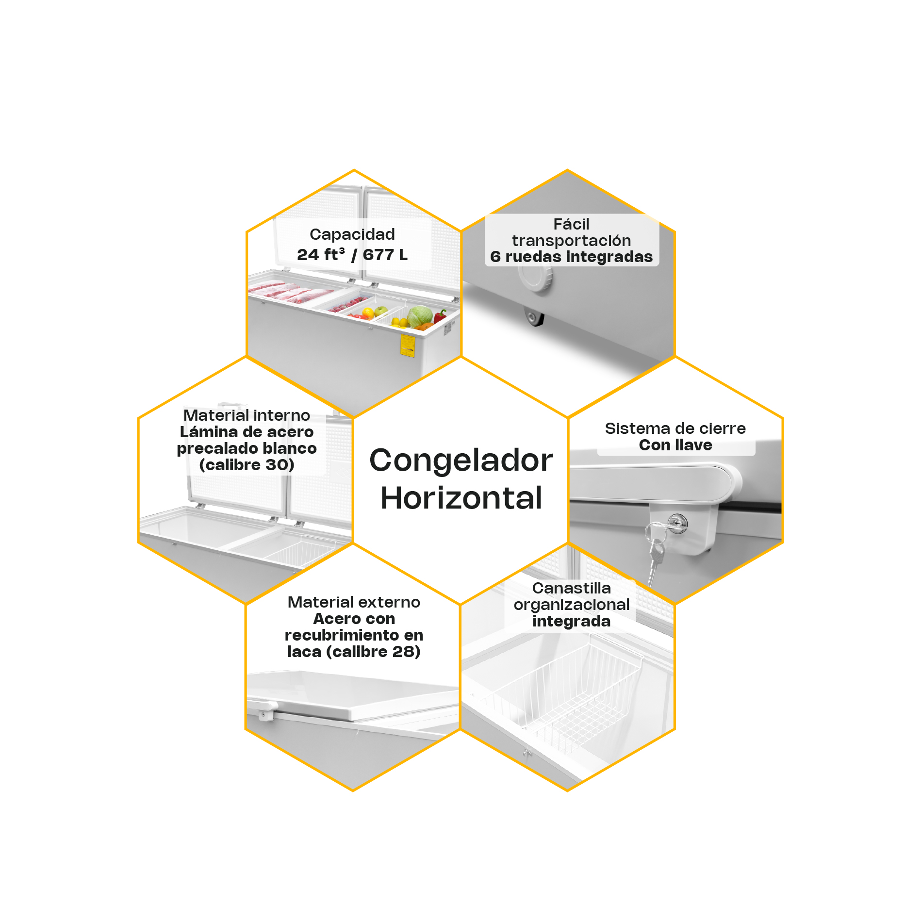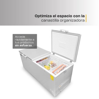 📦 Gran capacidad sin comprometer eficiencia. Ideal para negocios que manejan altos volúmenes de congelados.