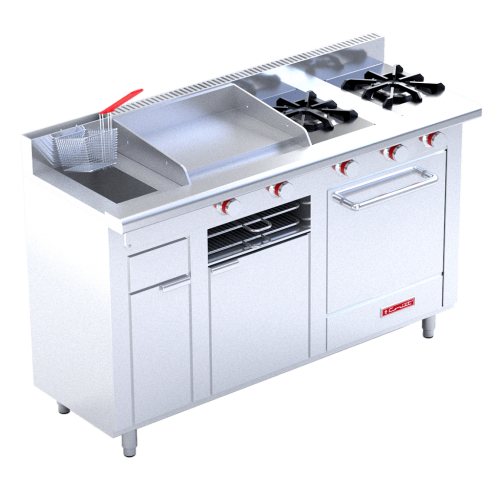 Coriat,MULTICHEF-TURBO-PETIT,Estufa,2,Quemadores,Plancha,Freidor,y,Horno,Premium,a,Gas