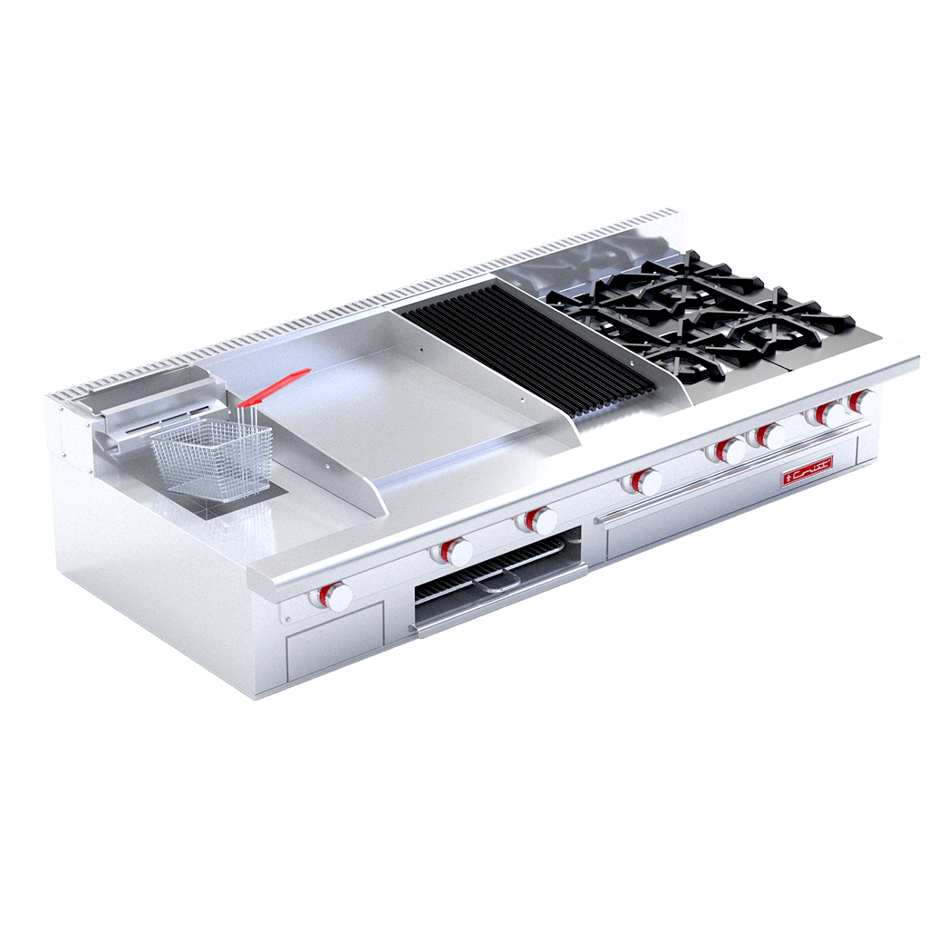Asber AEMR-2-RG24-B6-60-H LPG*NG Estufa Multiple con Plancha elevada de 24" + 2 Hornos 6 Quemadores y Gratinador