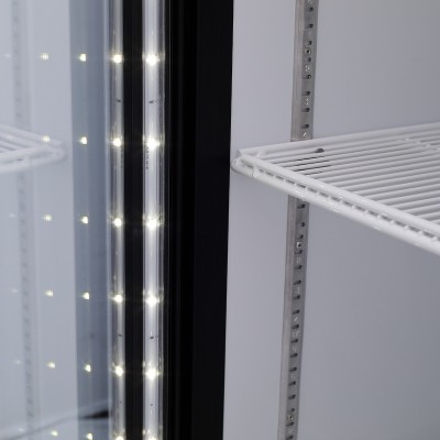 Las puertas de doble cristal están llenas de gas argón y cuentan con una capa Low-e que minimiza la transferencia de calor. Esto asegura que el frío permanezca dentro del refrigerador y que se reduzca el consumo de energía.