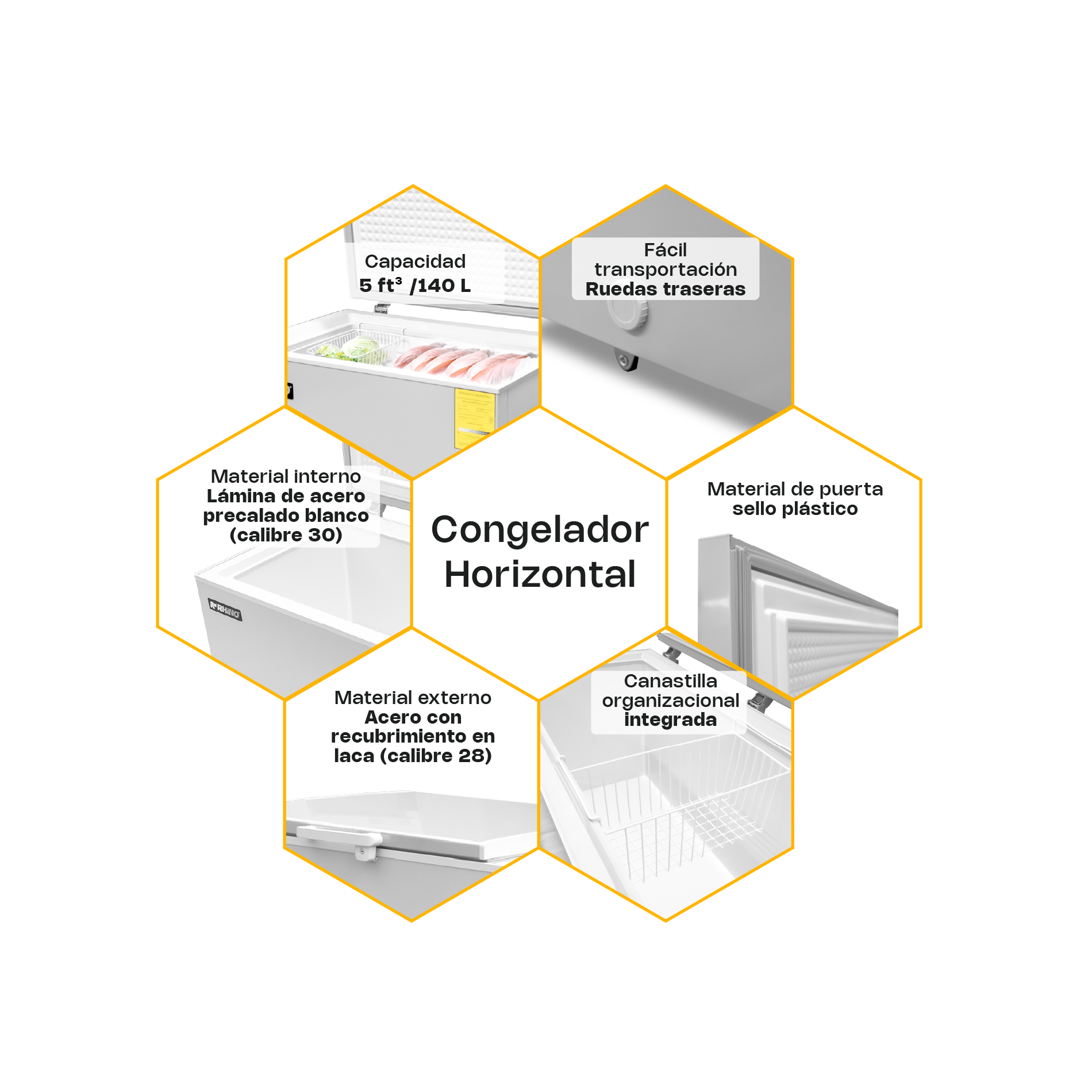 | Capacidad | 5 pies cúbicos / 140 litros |