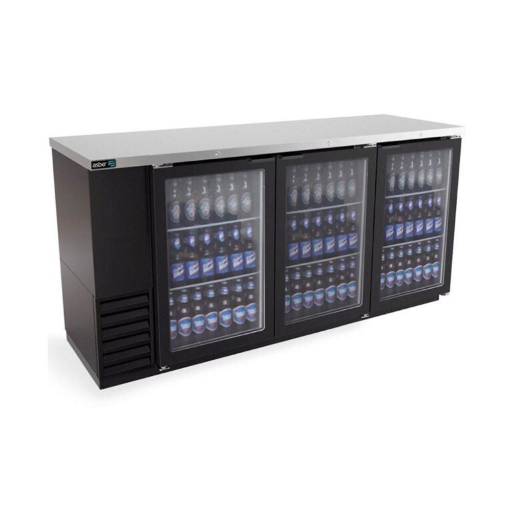 Asber ABBC-24-72-G HC Refrigerador Contrabarra en en Vinyl Negro- 3 Puertas Cristal Slim