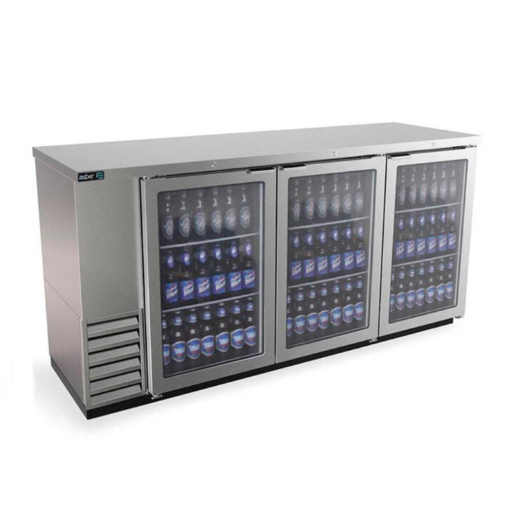 Asber ABBC-24-72-SG HC Refrigerador Contrabarra en Acero Inoxidable - 3 Puertas Cristal Slim, precio, medidas, caracteristicas, ficha tecnica, pdf, manual, comprar ahora