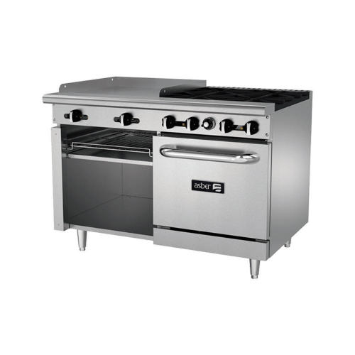 Asber AEMR-G24-B4-48-H Estufa Multiple con Plancha 24" + Horno 4 Quemadores