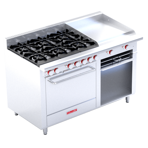 Asber AEMR-G24-B6-60-H LPG*NG Estufa Multiple con Plancha 24"+ Horno 6 Quemadores