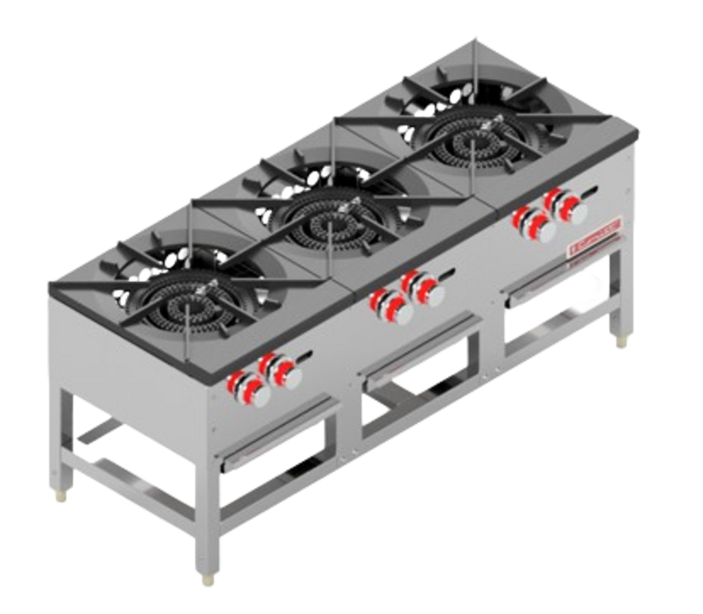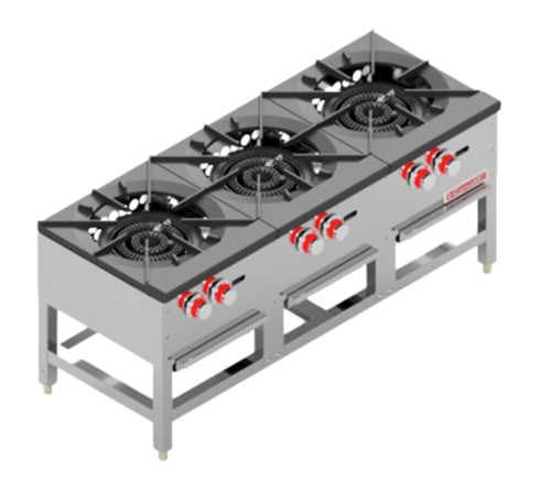 • 3 Quemadores de alta potencia de hierro fundido de 70,000 BTU/HR