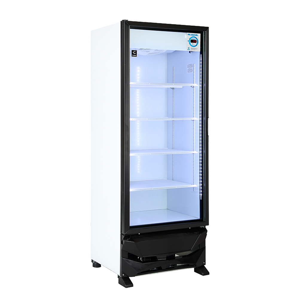 Enfriador vertical criotec cfx-19 con puerta de cristal y capacidad de 19 pies cubicos. Ideal para negocios que requieren enfriamiento eficiente con tecnologia i-tec y bajo consumo energetico