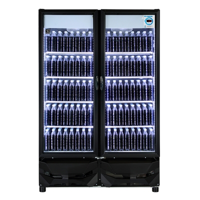 Las puertas de cristal templado de doble hoja minimizan la pérdida de temperatura al abrirse, mientras maximizan la visibilidad del producto para impulsar las ventas.