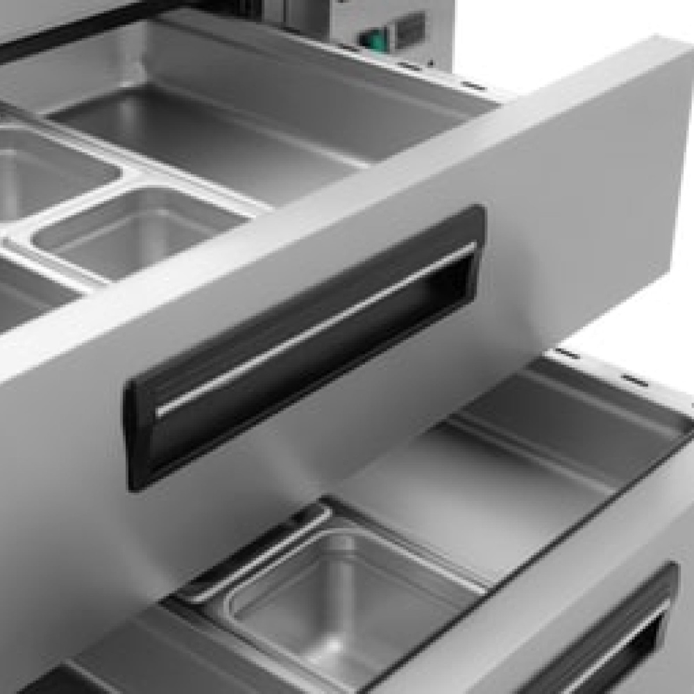 • Capacidad Amplia: Con cuatro cajones espaciosos, este refrigerador proporciona una capacidad generosa para almacenar una variedad de productos, permitiendo una organización eficiente y accesible en la cocina comercial.