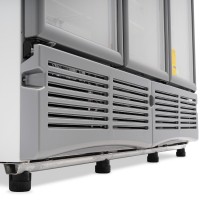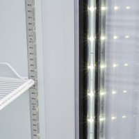 El diseño de las puertas de cristal doble con gas argón y capa Low-e minimiza la transferencia de calor, mejorando el rendimiento térmico del equipo. Además, estas puertas permiten una excelente exhibición de los productos almacenados.