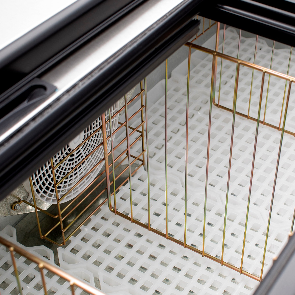 El interior del HR-18 cuenta con tres rejillas divisoras que permiten una organización personalizada, maximizando el uso del espacio interno y adaptándose a las necesidades específicas del negocio.