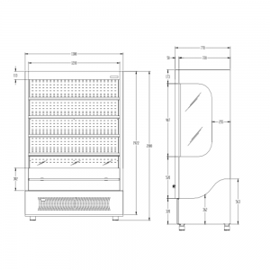 El Cortina de Aire Ojeda ALPA-120-G2 tiene estas dimensiones externas, lo que lo hace compacto y facil de colocar en cualquier espacio comercial sin comprometer su capacidad de almacenamiento y exhibicion.