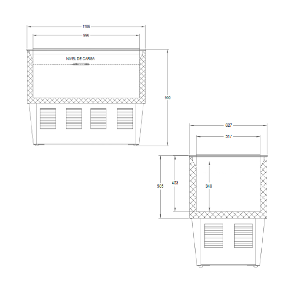 • Base en lamina galvanizada con pintura horneada en color negro: La base en lamina galvanizada con pintura horneada en color negro brinda estabilidad y resistencia, asegurando la durabilidad del congelador en entornos comerciales exigentes.