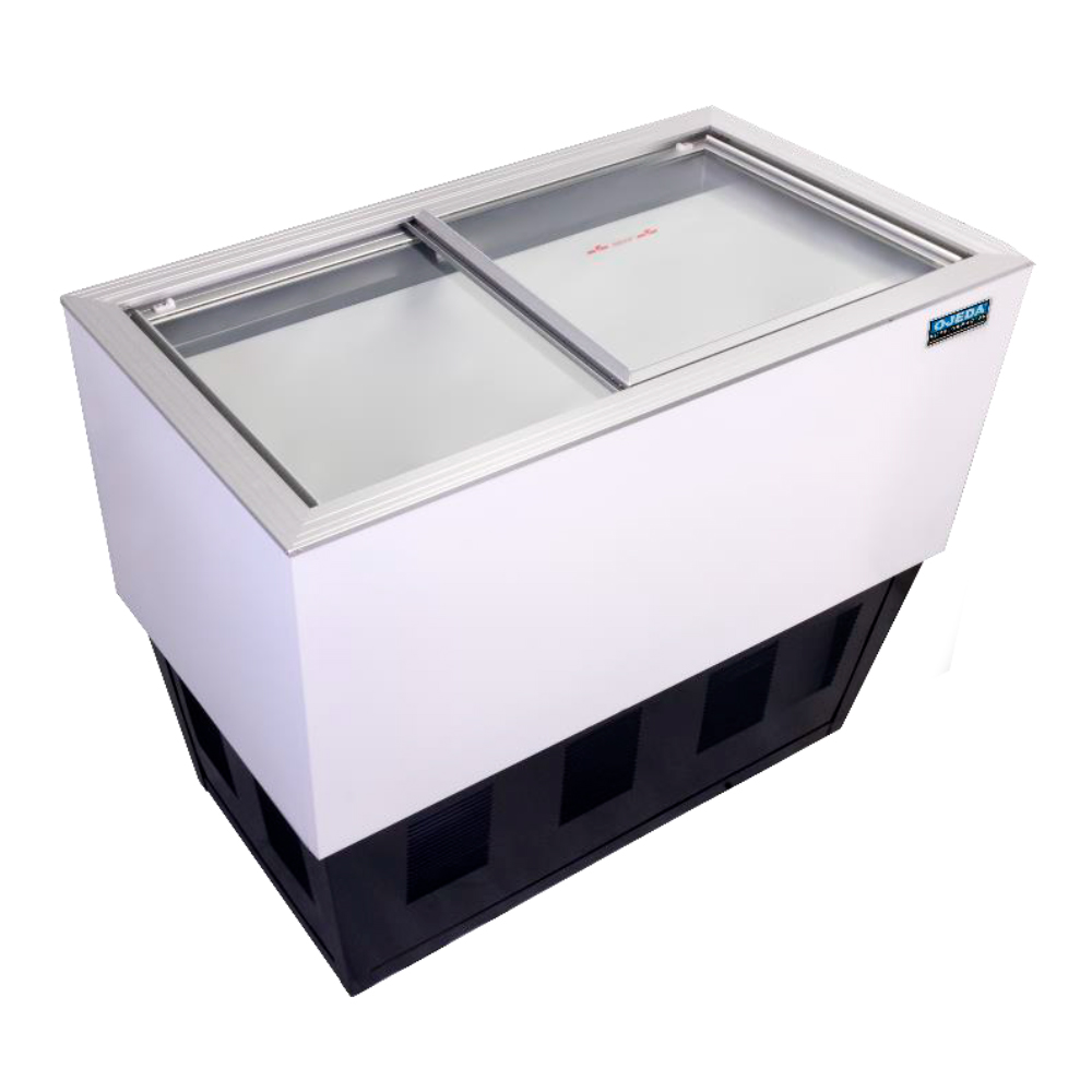 El Congelador Ojeda CHEP-110 cuenta con 2 puertas de cristal plano deslizables. Estas puertas te permiten acceder facilmente al contenido del congelador y exhibir tus productos de manera atractiva.