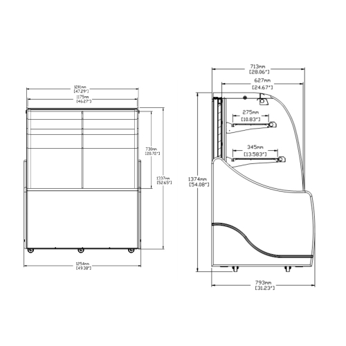 La Vitrina Cristal Curvo Ojeda DOLCE-1200-L tiene las siguientes dimensiones externas: