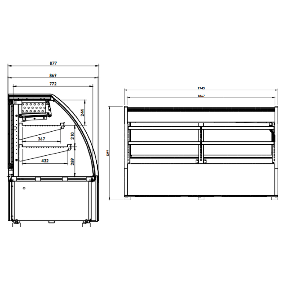 Ojeda MAXI-2000-ES Vitrina Cristal Curvo, medidas, caracteristicas, ficha tecnica, pdf, manual, comprar ahora