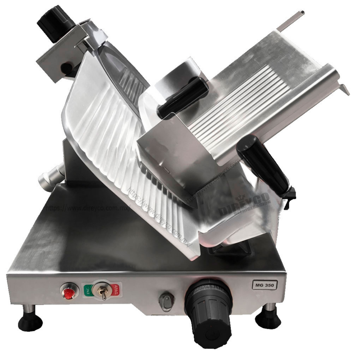 Rebanadora Mexcut MG-350 con cuchilla de 35 cm, carro largo y motor potente. Ideal para carniceria, cocina industrial y restaurantes. Envio gratis en CDMX.
