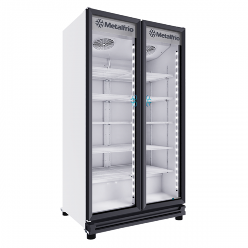 Metalfrio RB550 con 2 puertas full glass destaca tus productos con elegancia y visibilidad total. Ideal para exhibición.
